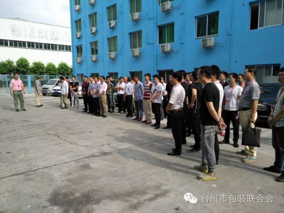 下午两点半台包联各瓦线会员单位集合参观东经包装生产线,大家都遵守东经包装的参观规章制度,佩戴参观卡,整齐有序的跟团参观。