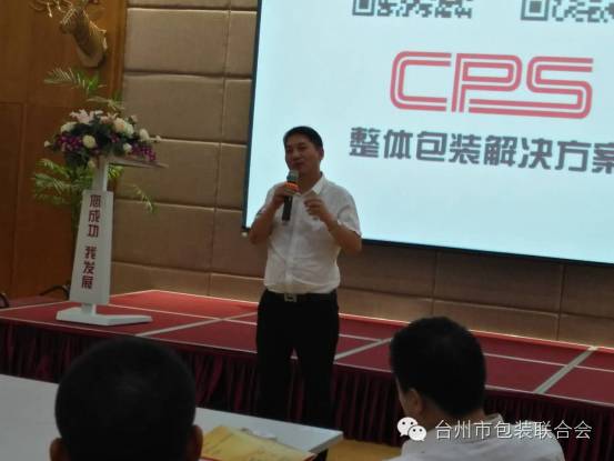 讲解完后,东经包装蒋总来到台上。蒋总首先热烈的欢迎台州的同行企业家来到东经包装参观指导,随后就目前的东经的现状和发展方向做了简单的介绍,就现在包装行业的恶性竞争、产能过剩的情况,企业必须做出改变。