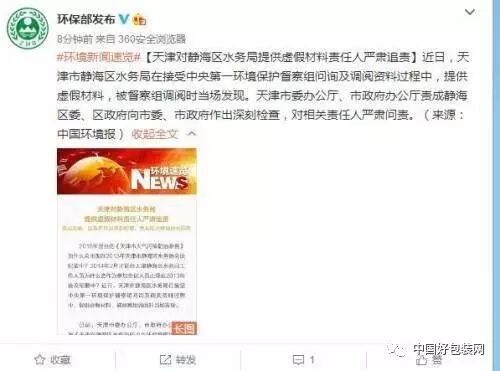 据环境保护部宣传教育司官方微博消息,近日,天津市静海区水务局在接受中央第一环境保护督察组问询及调阅资料过程中,提供虚假材料,被督察组调阅时当场发现。