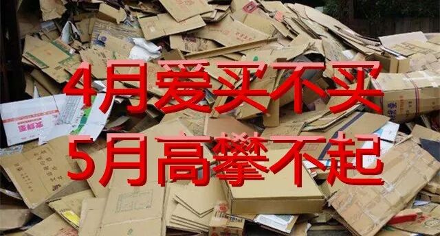 浙江嘉兴景兴纸业 (5月5日起),废纸价格上调100元/吨,化纤管上调50元/吨,办公废纸不变。调整后不带票到厂价:挂面纸2940元、A级黄板2910元、超市纸2880元、普通黄板纸2850元、化纤管2500元、甲牛3020-3120元:办公废纸:低白2740元,高白2930元。