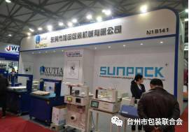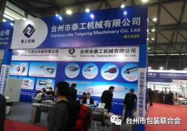 台包联副会长单位台州旭田包装机械有限公司与会员单位路桥泰工机械有限公司在会展展出包装机械设备。